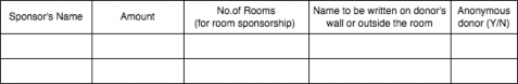 This is a golden opportunity for you to give back to your country. You can sponsor in your parent’s name, your own name, or your loved one's name. Each room will have sponsors' names carved outside. Each room sponsorship is $20,000 and can be sponsored by up to 4 people. You can also sponsor multiple rooms. Many people sponsor in the name of their parents!